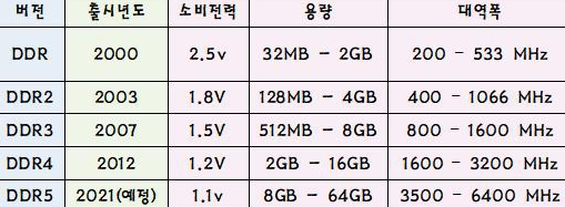 ◆ DDR램 세대별 모양과 사양